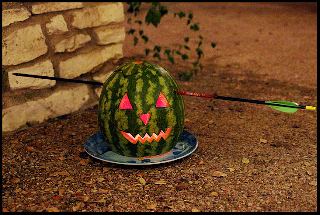 3. I am a total failure this Halloween. Not only did we not get any decorations put up, but we're not even going to have any PUMPKINS. I knew we were cutting it close, but I thought, surely, somewhere there would still be some pumpkins for sale the day before Halloween. But nope. We went to three different HEB's and Walmart, and there were no carving pumpkins at all. Bummer. Instead we got watermelon and pineapple, which we always do every year anyway. No pumpkins! Carving jack-o-lanterns is one of my favorite Halloween traditions! And that means no roasted pumpkin seeds. So sad. But my boys are really good sports. Brigham said, "Don't feel bad mom, you got us really awesome costumes!" And we did get candy at Walmart, so all was not lost. Still-- you can buy Christmas trees the day before Christmas, so why in the world can you not buy pumpkins the day before Halloween? Phooey.